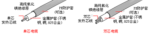 600℃;導(dǎo)體電阻值的范圍從28000Ω/km到19.2Ω/km;礦物絕緣電纜具有優(yōu)良的機械強度,耐腐蝕。飛拓電氣提供的加熱電纜能滿足不同功率的需要。