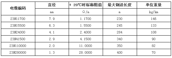代號 | 芯線材質(zhì) | 電阻率Ωmm2/m |